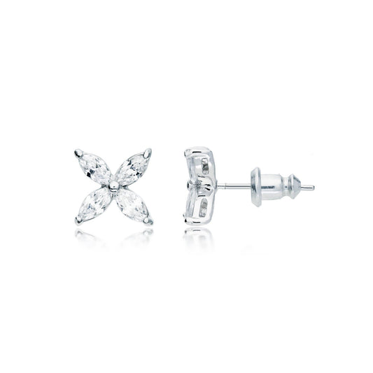 MYJS Victoria Flower Marquise CZ Stud Earrings Rhodium