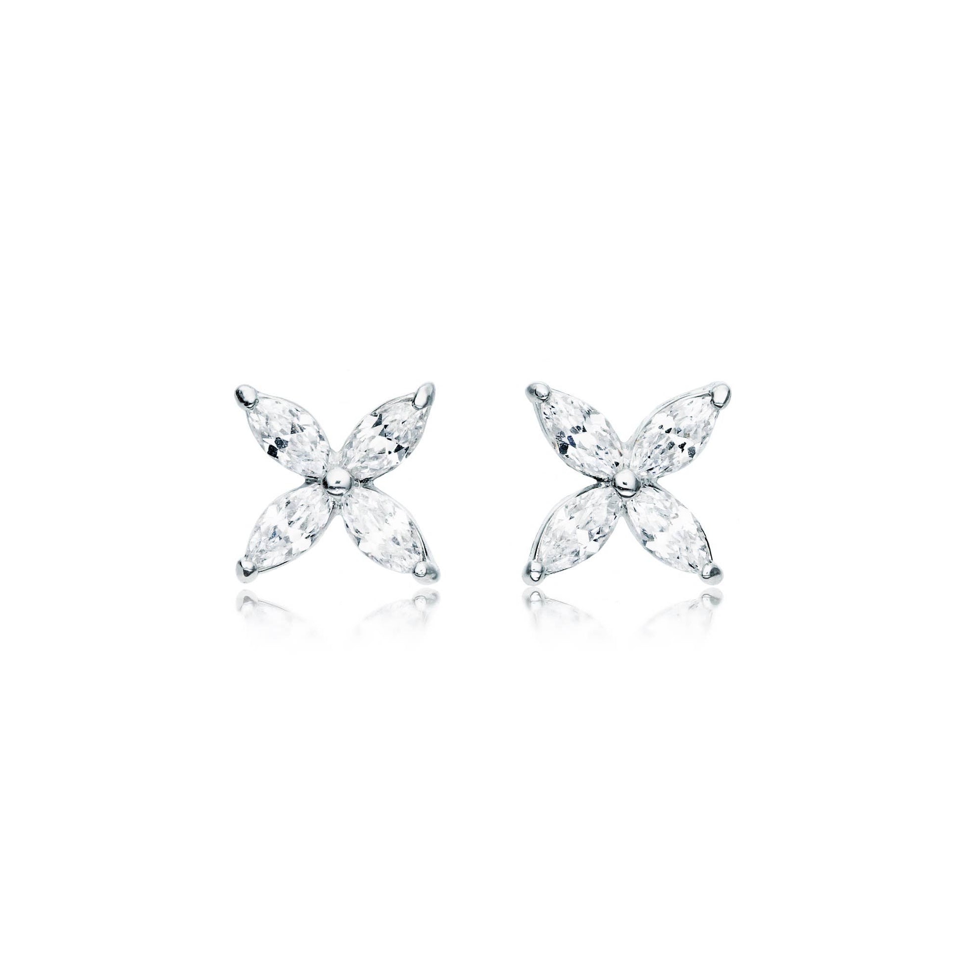 - MYJS Victoria Flower Marquise CZ Stud Earrings Rhodium Plated Bridal Gift.
